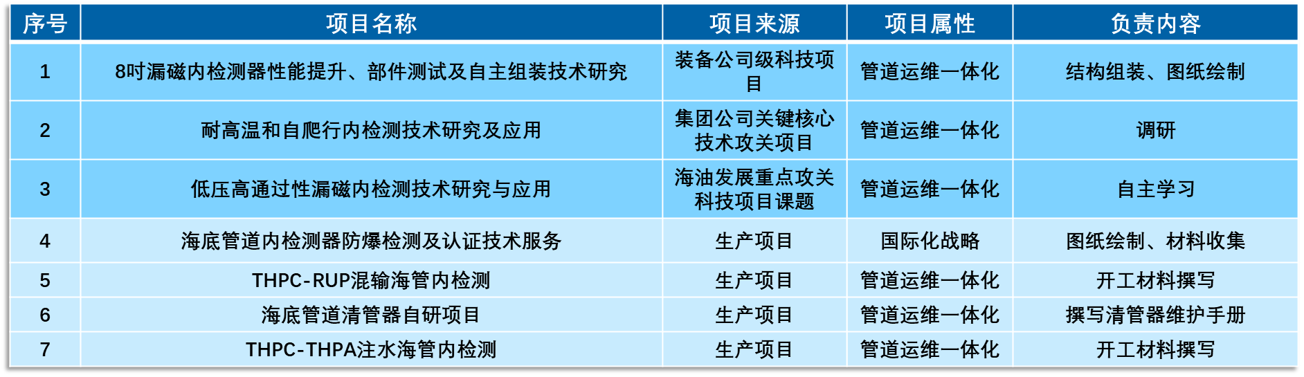 2024年10月,我以校企联合培养研究生身份,正式入职中海油(天津)管道工程技术有限公司,有幸成为该联培项目的首批实习生。我深知这份机会的珍贵,始终怀揣着“将理论扎根实践,以实践锤炼能力”的初心,在企业的实战平台上探索成长。一年间,我参与 2项科研项目、4项生产项目,还自主钻研了1项科研课题,在躬身实践中实现个人价值,也收获了领导与同事的认可。
